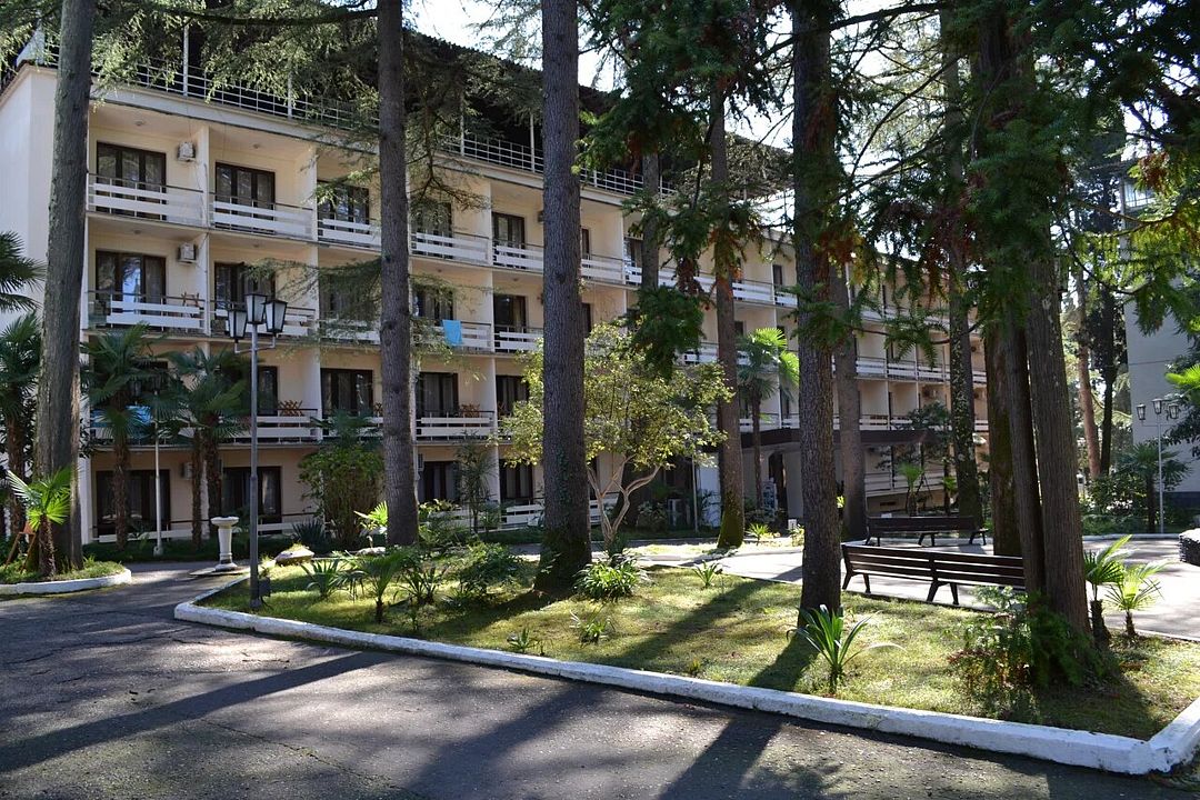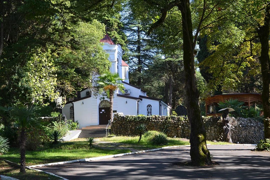 Пансионат расположен в одном из самых экологически чистых районов Абхазии, на территории есть действующий православный храм.