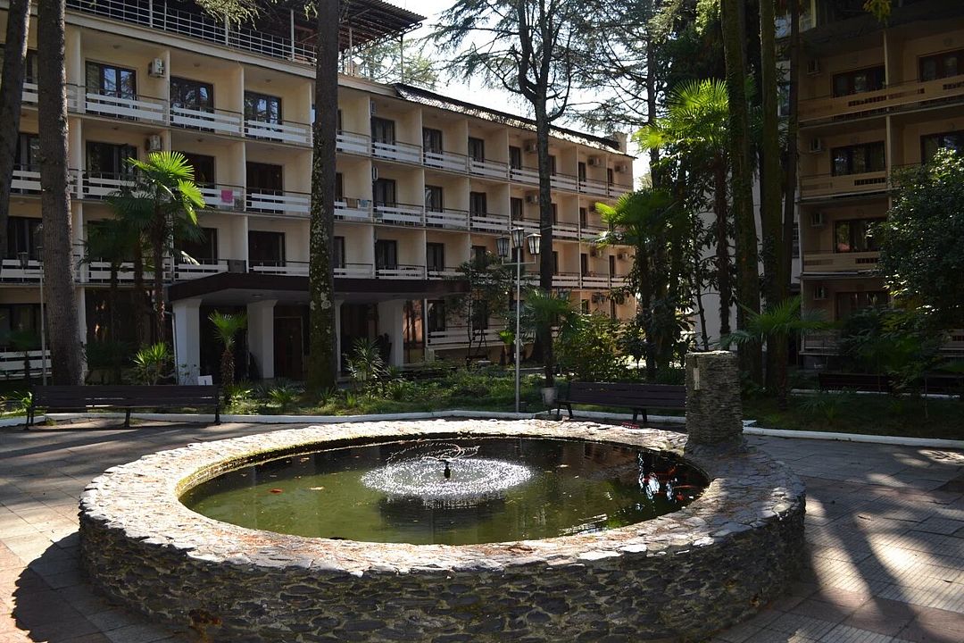 Пансионат «Айтар» расположен рядом с Сухумским дендропарком, на собственной охраняемой закрытой территории, оборудованной искусственными водоемами. Парковая зона составляет 3 га.
