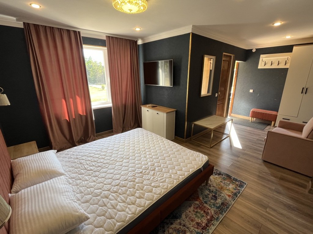 В номере вы найдёте телевизор. Оснащение зависит от выбранной категории номера.