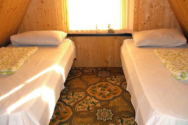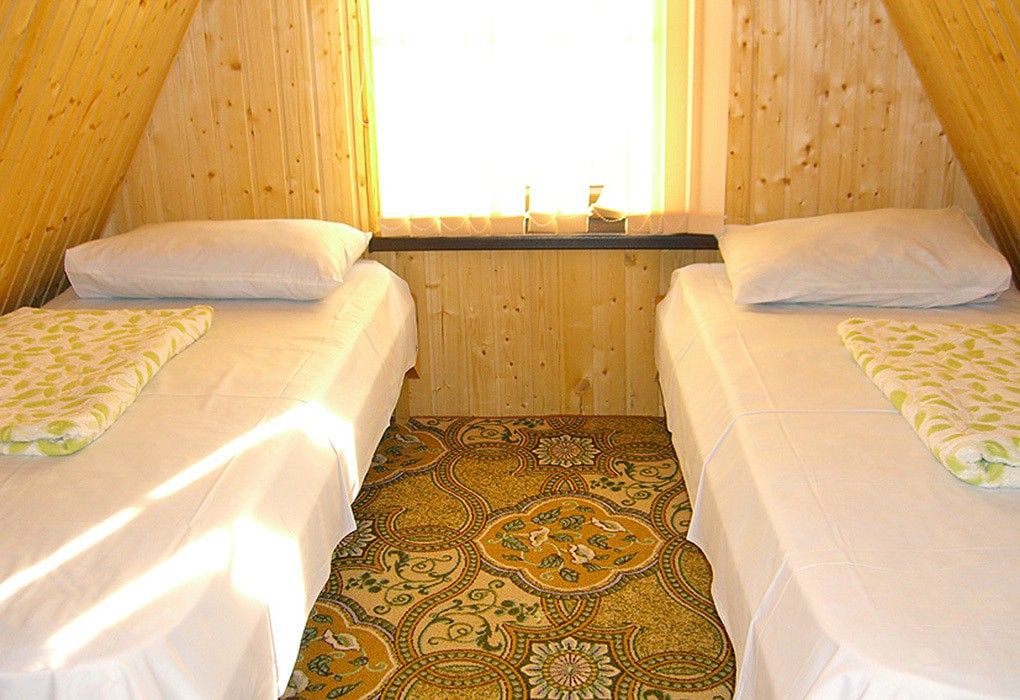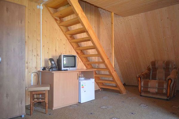 1-этаж - гостиная, 2-й этаж - спальня с 1-спальными кроватями.