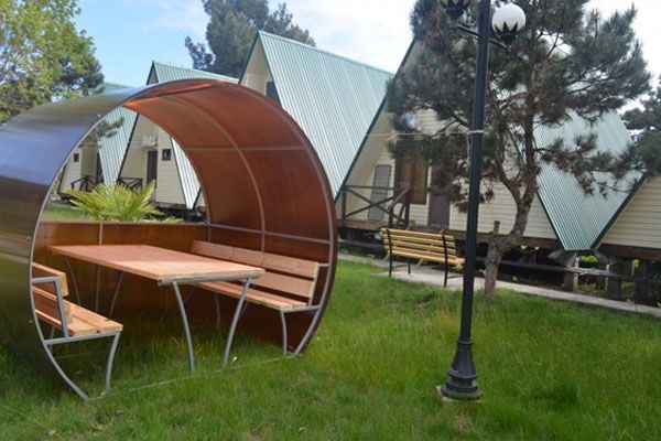 Территория гостиницы располагается в зеленой парковой зоне, среди субтропических деревьев и цветов. Здесь разместились 64 семейных коттеджа в два этажа с балконами. Каждый из коттеджей имеет отдельный вход, собственный санузел с душем и оснащен необходимой бытовой техникой: кондиционером, холодильником, телевизором.