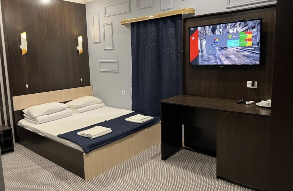 Номер уютно обставлен и оснащён необходимым, чтобы отдохнуть после долгого и насыщенного дня. Имеются телевизор. Перечисленные услуги есть не во всех номерах.