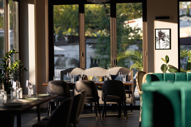 В отеле есть бар, где гости могут насладиться напитком. Также на территории отеля работает ресторан, где гости могут попробовать разнообразные блюда.