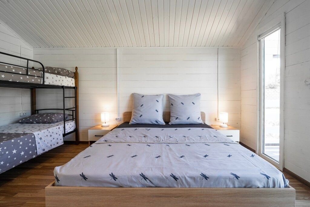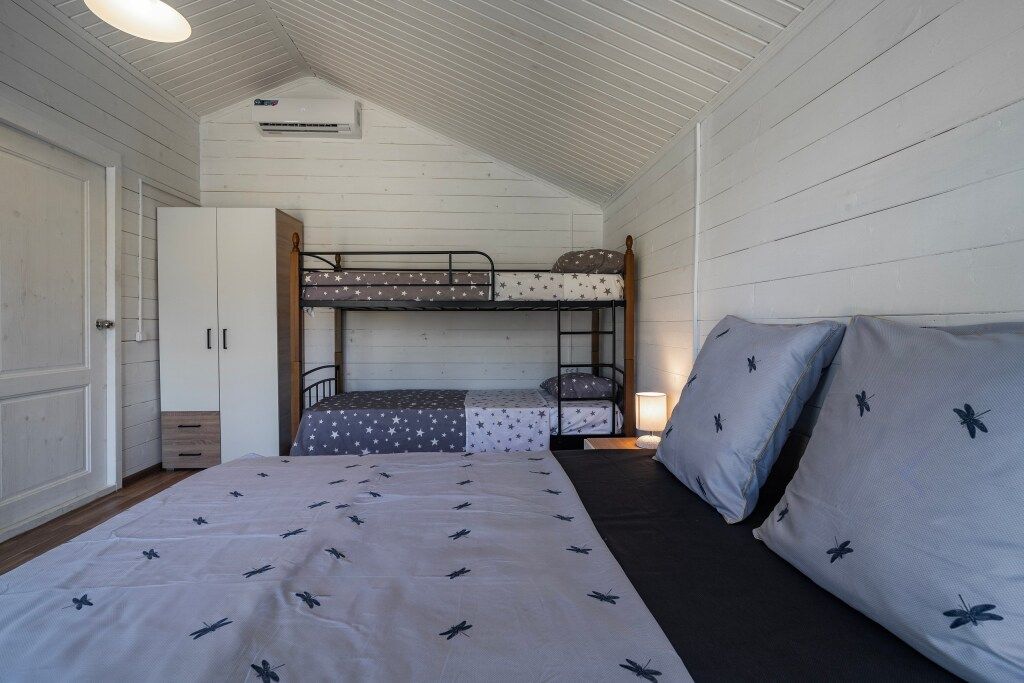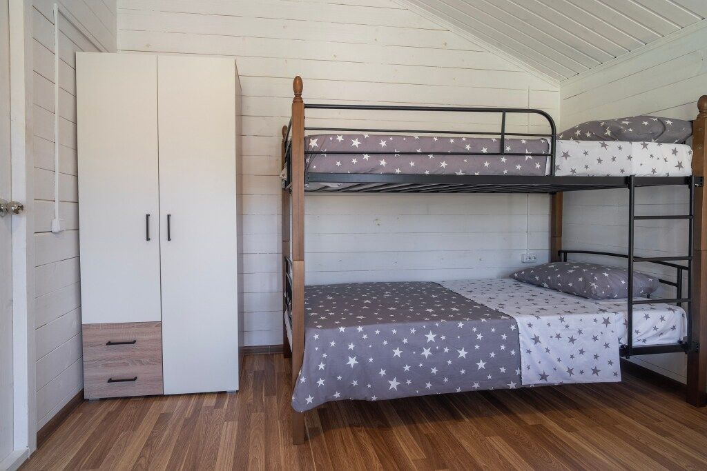 Wi-Fi, холодильник, кондиционер, фен, плита для приготовления пищи, микроволновая печь, ванна или душевая кабина, банные полотенца, двуспальная кровать, стиральная машина, чайник, двухъярусные кровати, телевизор со Smart TV, без питомцевВ гостиничном номере