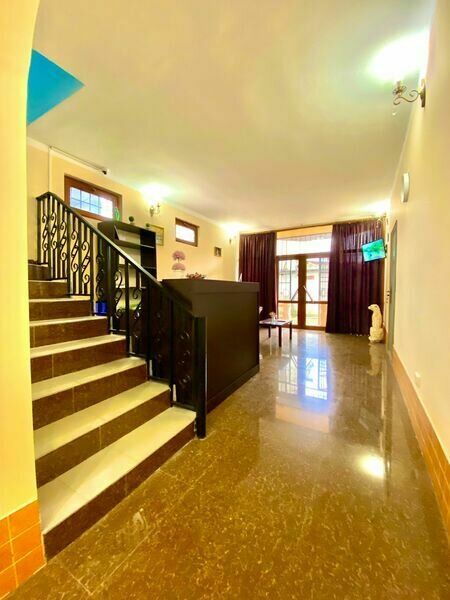 Расстояние до центральной набережной составляет 15 минут пешим шагом, до галечного оборудованного пляжа – 3 минуты. Вокруг гостиницы есть рынок, магазины, кафе с местным колоритным меню.