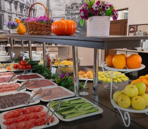 Завтрак хороший. Были и омлет, и сосиски, и нарезки. Овсянка, овощи, фрукты. Кофе в турках и в автомате. Выпечка. Все, что надо для хорошего начала дня.