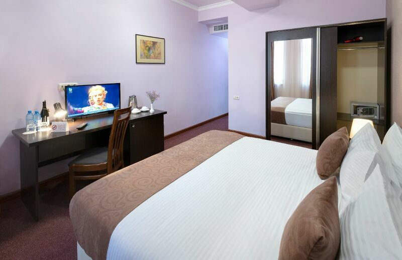 Путешествие в одиночкуСовременный удобный отельОтель расположен в 15 минутах ходьбы от площади Республики, номер просторный, санузел удобный, есть все необходимое: кондиционер, фен, холодильник, сейф, одноразовые тапочки. Кроме того, есть бассейн и сауна за дополнительную плату в 3000 драм, если ты живешь в отеле и 4000 драм, если пришел с улицы. Завтраки богатые, разнообразные, вкусные. Персонал доброжелательный и предупредительный, мне было комфортно, рекомендую с чистой совестью!