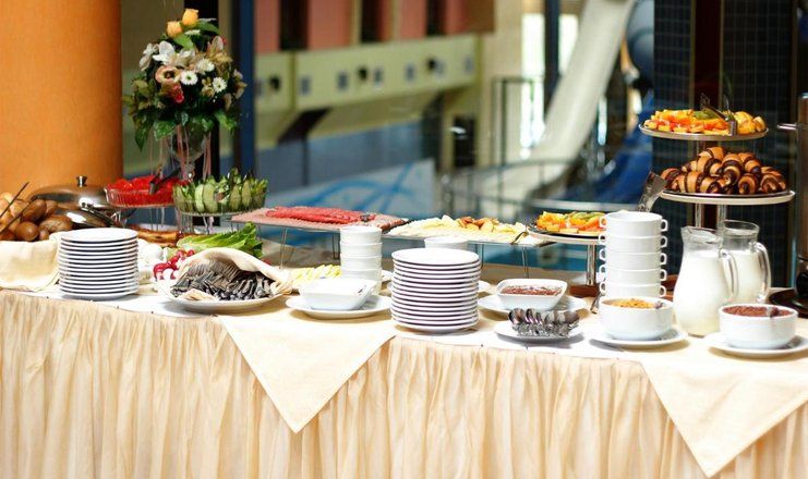 Каждое утро в 07:30 сервируется богатый завтрак со свежей выпечкой и разными лакомствами. Вечером в баре можно заказать любимые напиток. На территории отеля функционирует ресторан, где можно отведать лучшие блюда местной кухни.