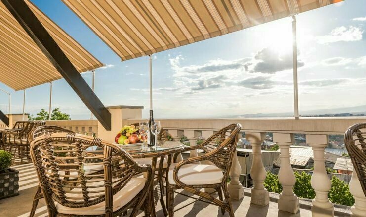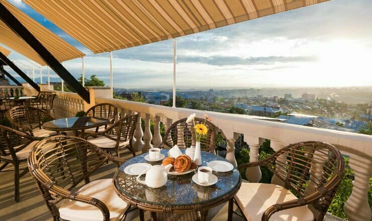 Короткий отпуск с друзьямиЧудесный тихий отельЧудесный отель, который расположен в частном секторе. На машине от центра города максимум 10 минут. Из номеров открывается великолепный вид на город и горы. Персонал дружелюбный. Завтраки были вне всяких пахвал, всё было очень вкусно (были и нац блюда, и фрукты и выпечка). Есть небольшая лаунж зона на 1 этаже и столики на улице.