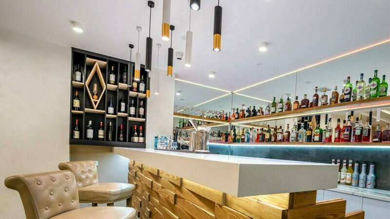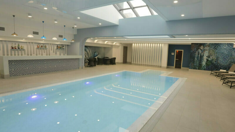 Крытый бассейн с естественным солнечным светом и полами с подогревом, а также бар с полным спектром услуг.