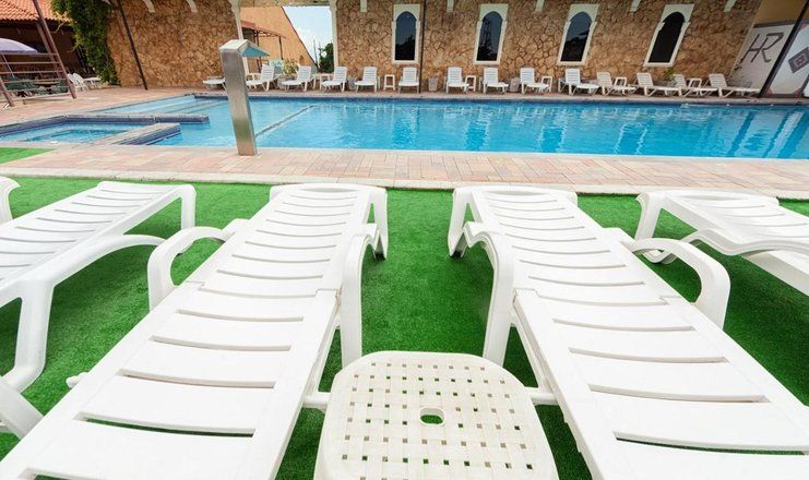 Тип бассейна: открытый бассейнРядом с бассейном: шезлонги, зонтикиРазмеры: 7.5 x 18 мПлощадь: 135 м²Глубина: 250 смБассейн работает с 1 июня по 1 октября.