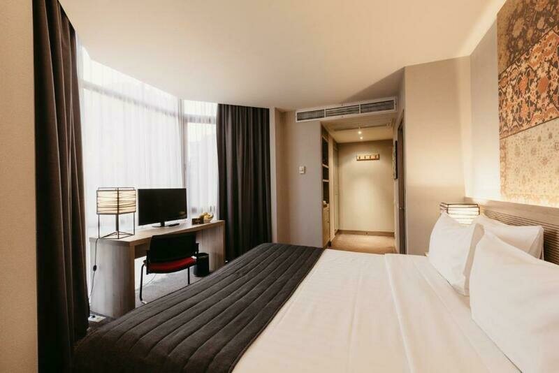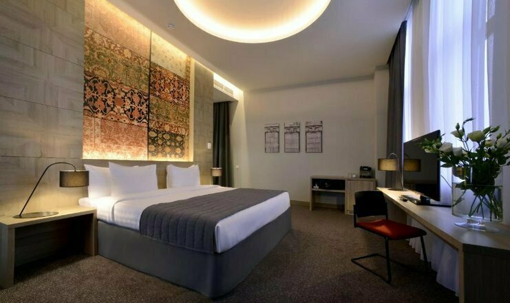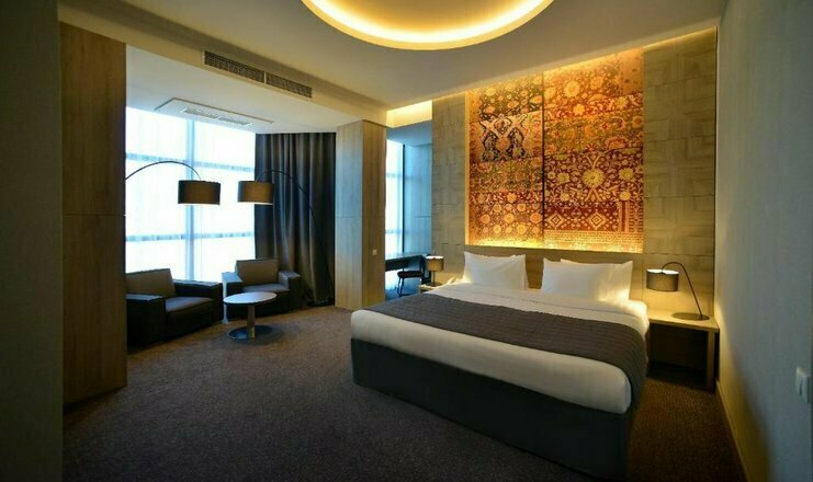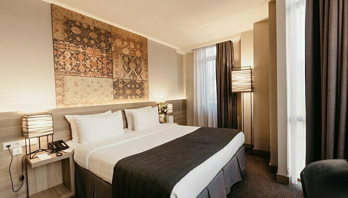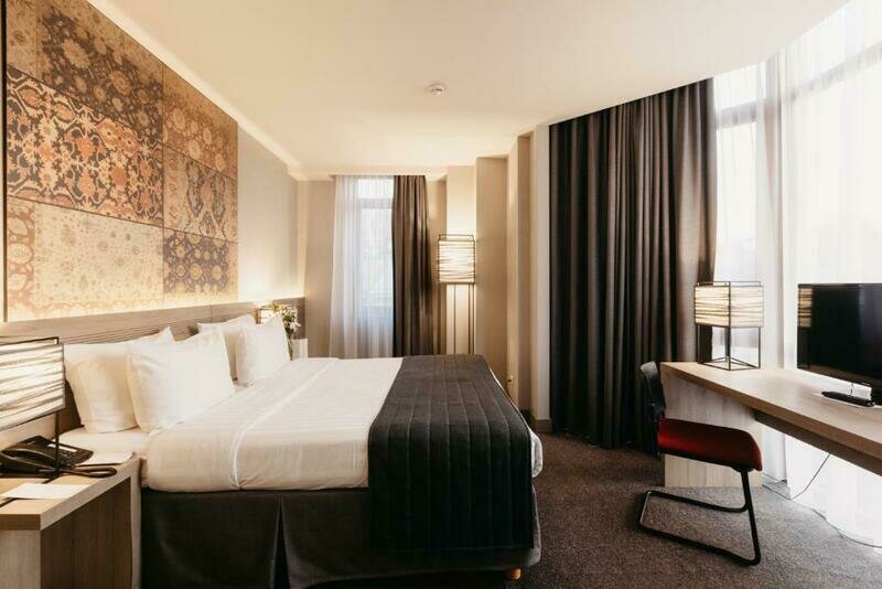 Путешествие по работеЧудный отель в центре ЕреванаОтель очень красивый, удобно расположен в тихом месте, но рядом с основными достопримечательностями города (площадь Республики, Вернисаж, Каскад). Красивый ресторан с вкусной едой. Из минусов - неудобные высокие подушки (я привыкла спать на более низких), система кондиционирования очень шумная. В номере было очень холодно, кондиционер гонит воздух поверху, внизу у пола все равно холод. Попросили дополнительное одеяло и обогреватель - все сразу же принесли и спасли нас от холода)