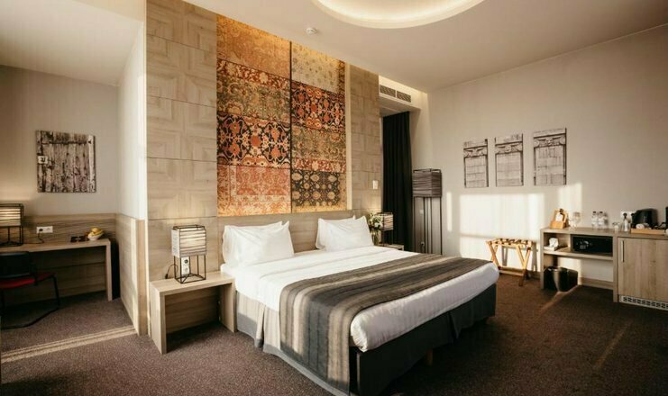 К размещению гостей предоставляются комфортабельные номера различных категорий. Все они имеют интересное, уютное оформление и обустроены удобными спальными местами, качественной мебелью и необходимой техникой. Ванная укомплектована стандартным набором сантехники со встроенным феном, прилагается комплект полотенец, гигиенические принадлежности и тапочки.