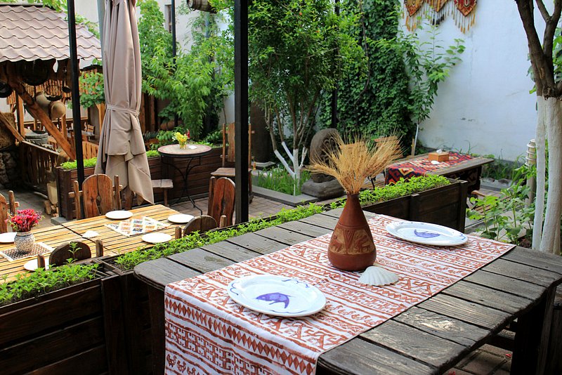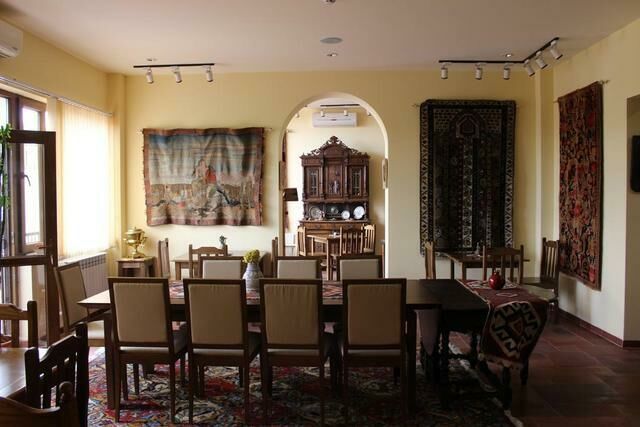 Короткий отпуск с друзьямиОтличное место для познавательного отдыхаЭто удивительное место, в котором каждый уголок пропитан любовью к ковроделию и к национальному быту. Прекрасная, очень познавательная экспозиция, посвященная истории и технике ткачества ковров в Армении. Злесь пооводятся занятия с детьми, мастер-классы для взрослых и даже проходят театральные предстааления. А мы пришли поужинать большой компанией в закрытом от шумного города внутреннем дворике отеля среди фруктоввх деревьев и предметов традиционного деревенского быта. Меню не многообразное, но каждый день разное. Подойдет и мясоедам и вегетарианцам. А на память можете приобрести коврики, сотканные деревенскими детишками - получить прекрасный сувенир и помочь их семьям.