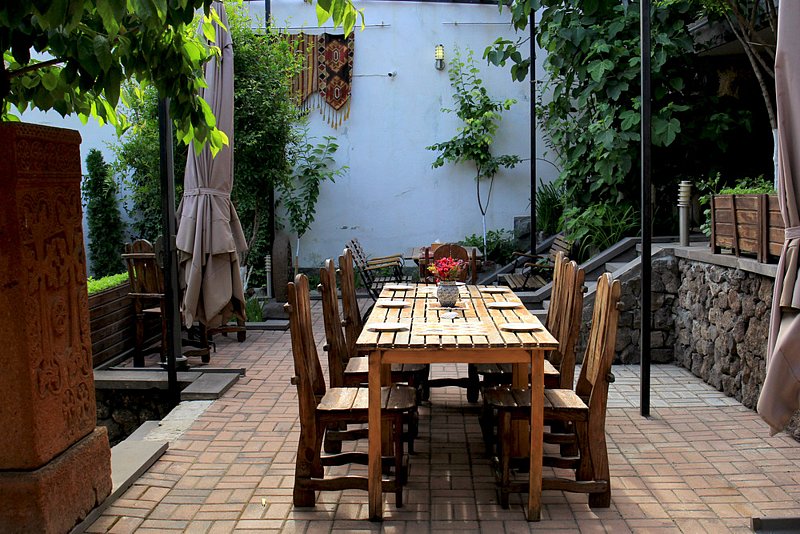 сент. 2019 г.отличный отель!Отель прекрасный! оформлен национальном стиле: с коврами и деревянной мебелью. номера не большие, но очень уютные. номер 4 особенно хорош - с балконом и видом на Арарат. Чисто, полотенца меняют каждый день. гели для душа, шампуни, шапочки для душа - все своевременно пополняется. завтраки вкусные, блинчики превосходные, выбор варенья отличный. есть кафе, готовят вкусно и не дорого.