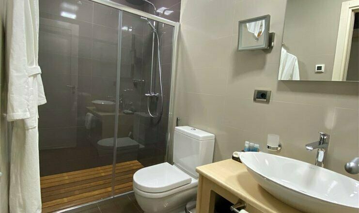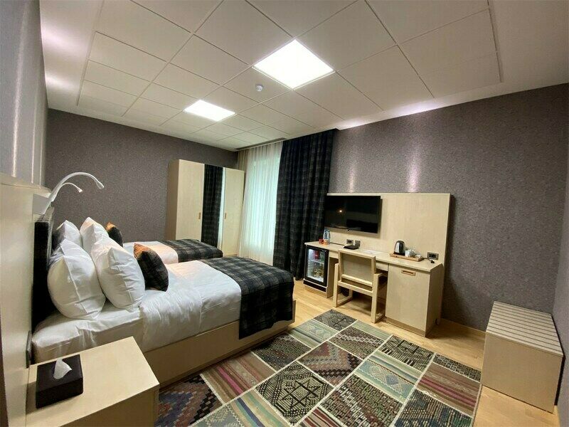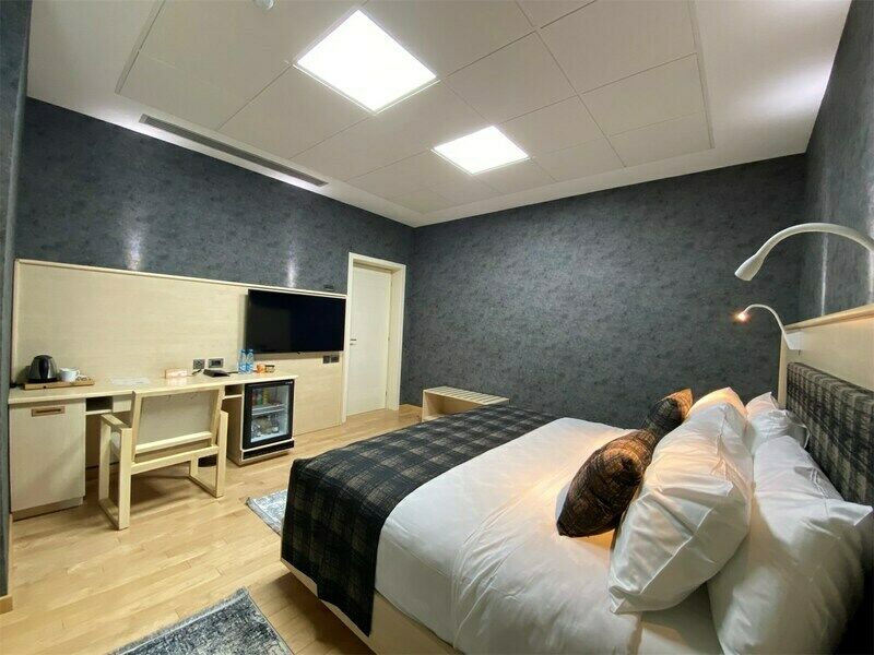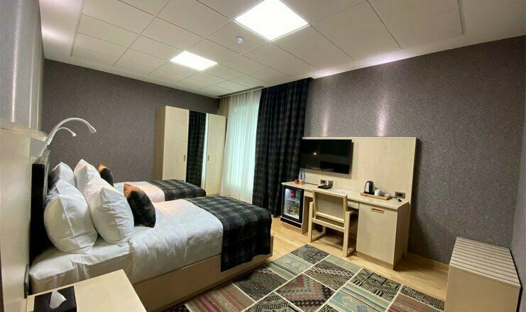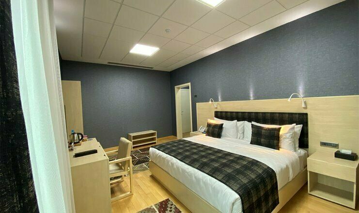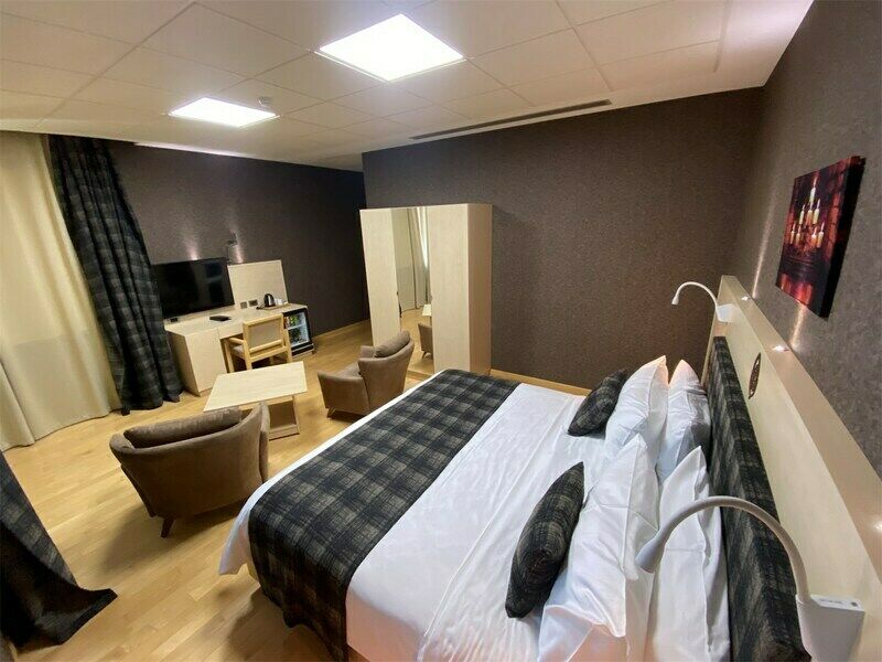 Просторные номера укомплектованы кондиционером, телевизором с функцией Smart TV и спутниковыми каналами, письменным столом, чайником, сейфом и мини-баром с холодильником.