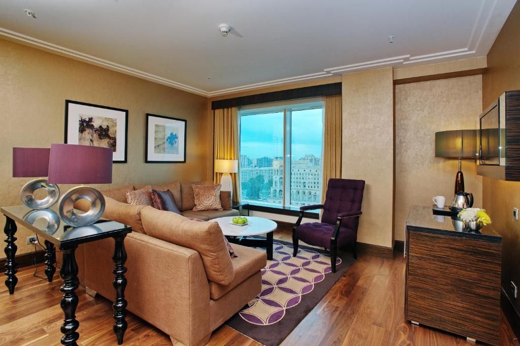 В спа-салоне отеля есть пять отдельных процедурных кабинетов и люкс, из окон от пола до потолка открывается вид на Баку и Каспийское море. Удобства включают отдельную паровую баню, сауну и кушетку. Все процедуры являются органическими, натуральными и научно обоснованными. Здесь также есть турецкий хаммам, джакузи, 18-метровый крытый бассейн и фитнес-центр с комнатой для йоги.