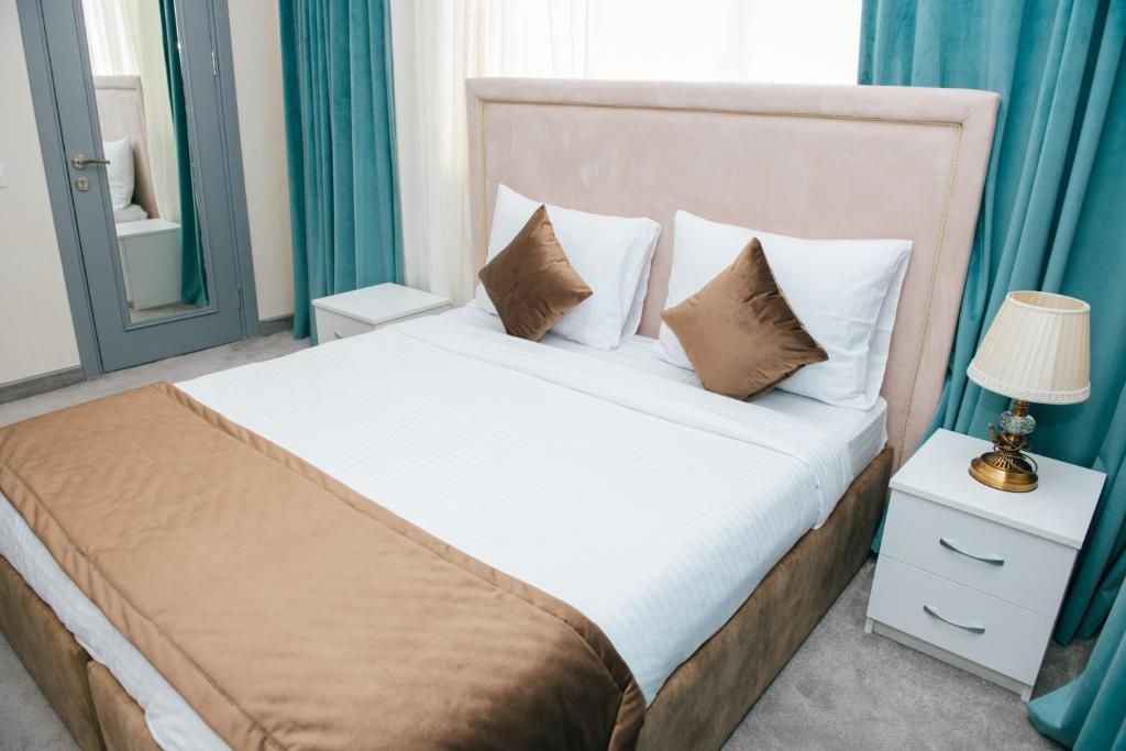 Все номера выдержан в едином современном стиле, где есть все необходимое для продолжительного размещения. Из окон открывается панорамный вид на окрестности. В каждой комнате есть кровати king-size, тумбочки, столик и шкаф, а из техники можно воспользоваться кондиционером и мини-баром. Также есть индивидуальная ванная комната с бесплатным набором гигиенических средств.