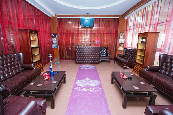 - Интерьер «Deluxe Smokers Club», оформленный в восточном стиле, заставит Вас почувствовать себя султаном! К вашим услугам представлен большой ассортимент кальяна с разными фруктовыми ароматами и хороших сигар.