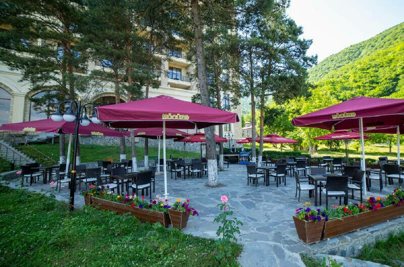 Путешествие с паройСказочно!Мы оставались в коттедже на шестерых. Опыт был незабываемый, вокруг горы и лес, чувствуешь себя владельцем домика на природе. В коттедже было очень тепло, несмотря на холод снаружи, сам интерьер как коттеджа, так и самого отеля очень уютный, все чисто, красиво. Еда вкусная, на территории два основных ресторана, есть озеро с уточками. Нас покорил персонал - все такие улыбчивые, дружелюбные. Довольны всем. Обязательно вернемся при следующей поездке в Шеки!