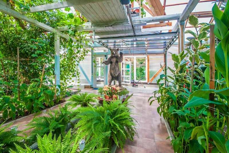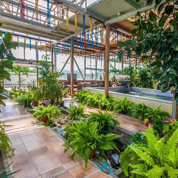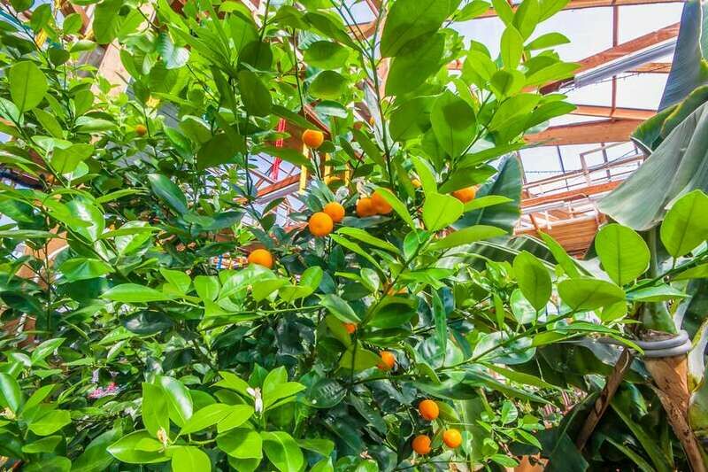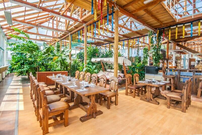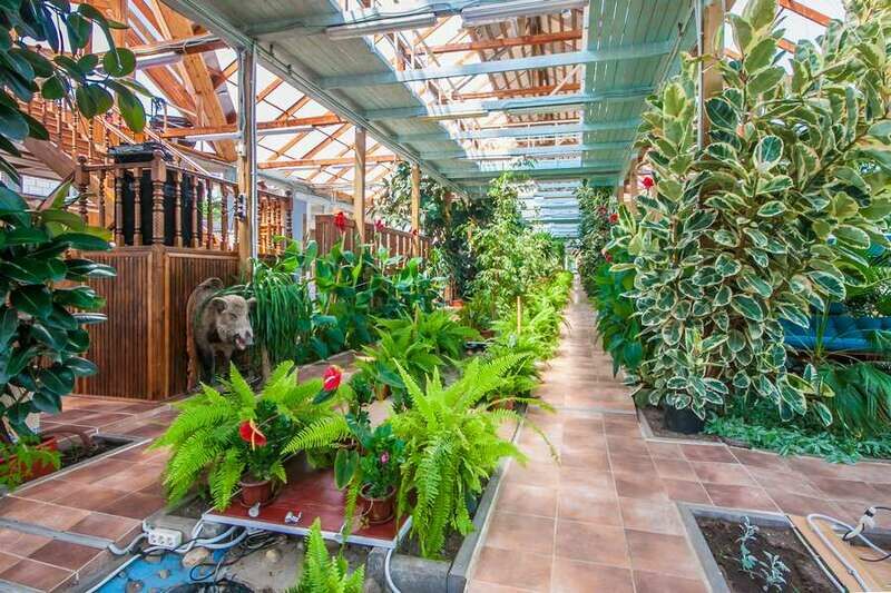 На территории есть собственная оранжерея, где растут белорусские мандарины, бананы, апельсины, лимоны. Вы также сможете понаблюдать за жизнью осетров, кенара.
