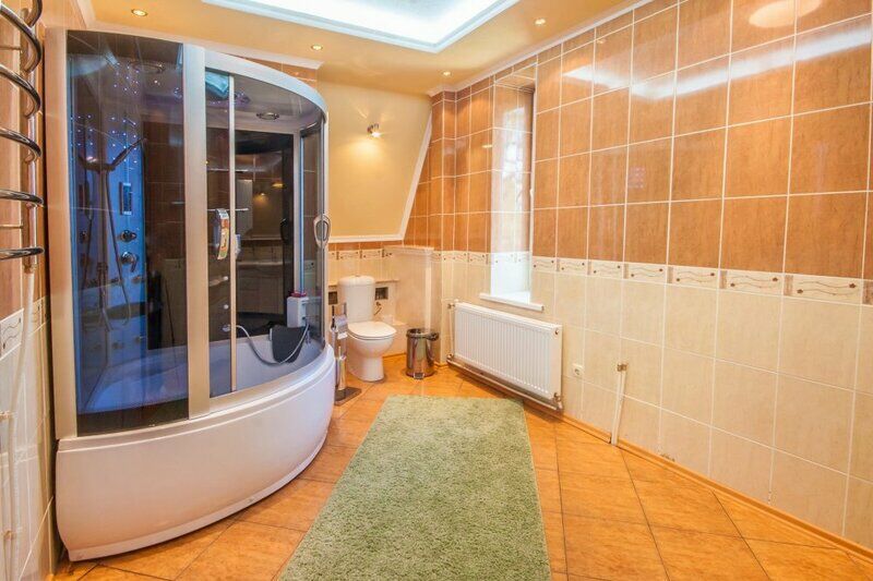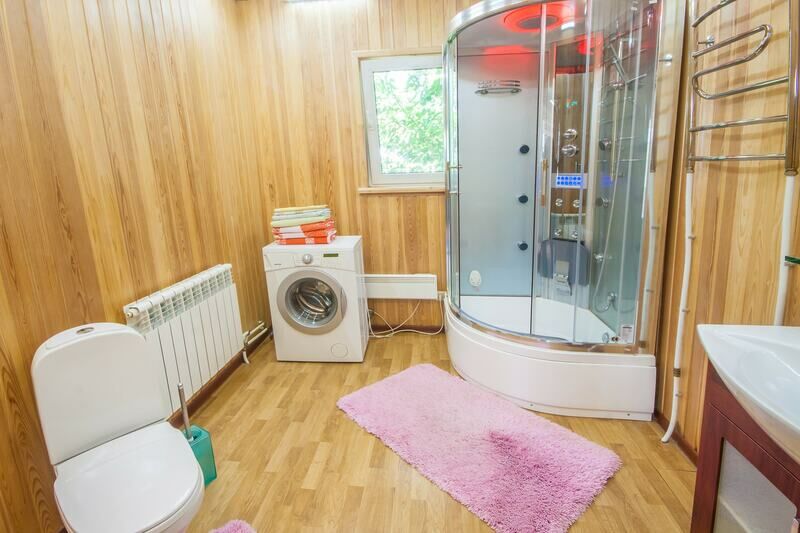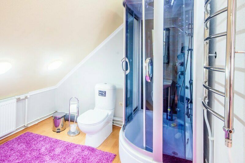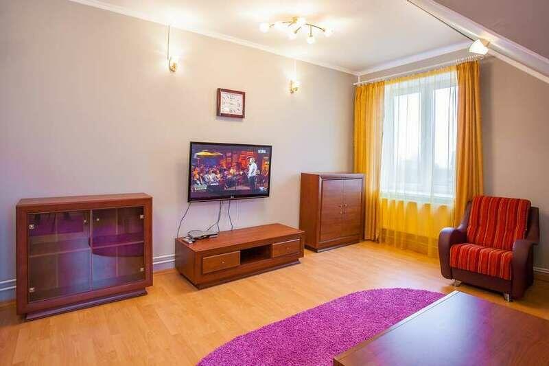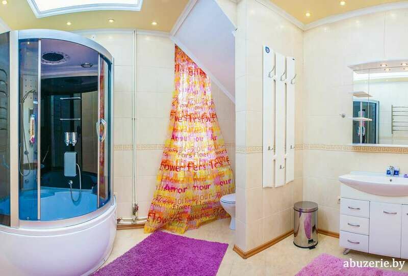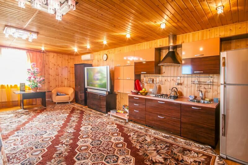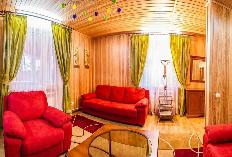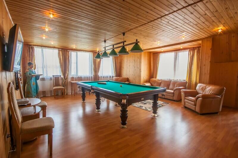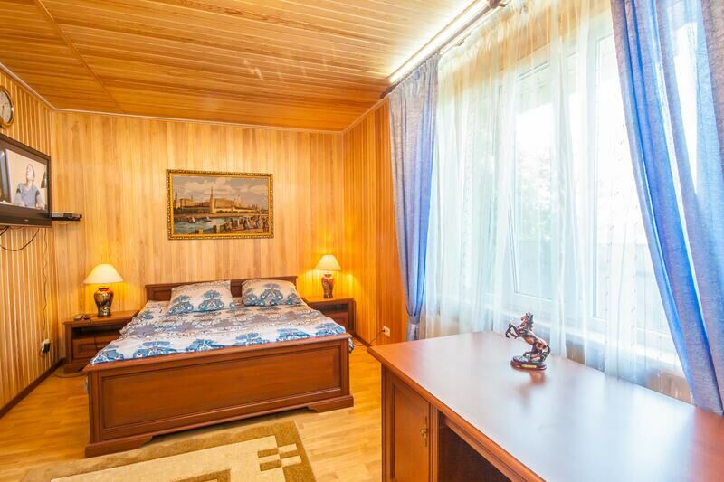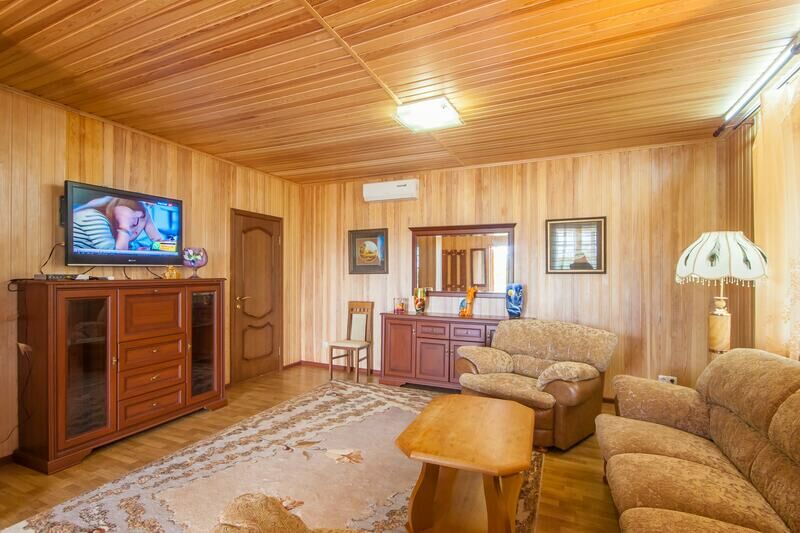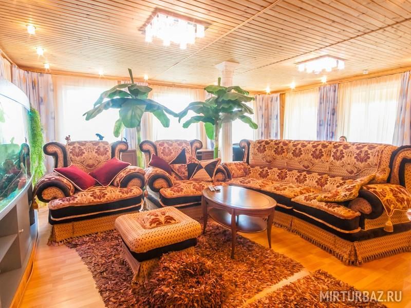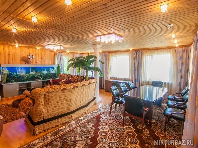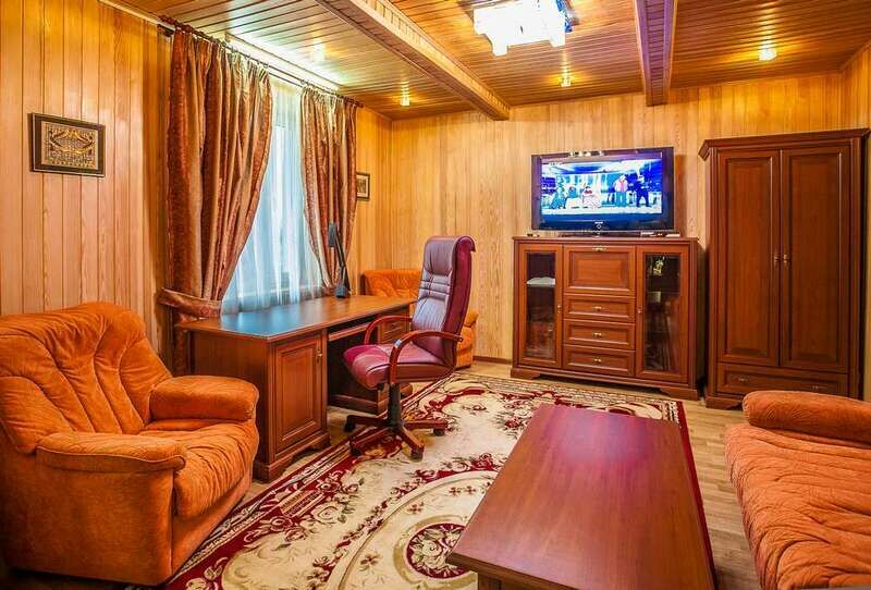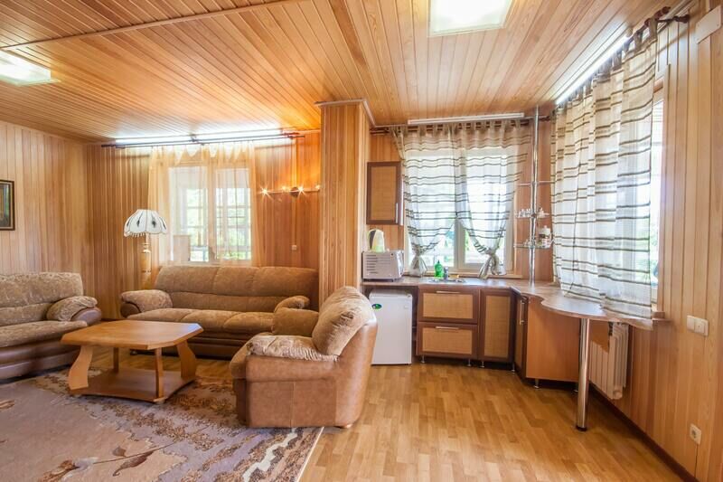 Коттедж построен со всей широтой белорусской души: три просторные светлые комнаты, отделанные деревом, камин, настоящий русский бильярд, огромный аквариум с рыбками, шикарная мебель из красного дерева, большие телевизоры — это немаловажные детали для тех, кто привык к комфорту и уюту высшего уровня