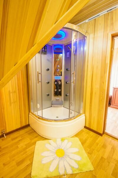 Как и все дома в агроусадьбе, дом «Форум» очень стильный и комфортный. Вам нужно только арендовать коттедж и наслаждаться: природой, озером, красотой усадьбы, вкусными бананами с веток оранжереи и другими прелестями отдыха в Усадьбе «Абузерье». Коттедж в аренду «Форум» готов принять от двух до восьми человек.