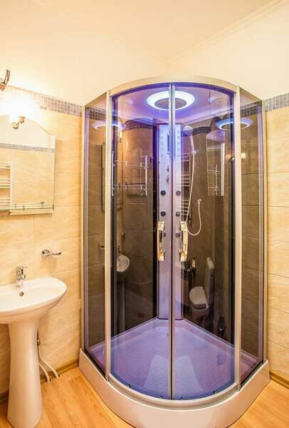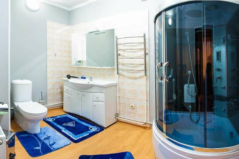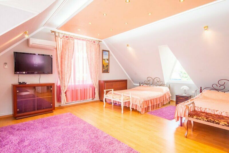 В доме очень уютно и комфортно: просторная гостиная с белой кожаной мебелью, оборудованная кухня, обеденный стол, 4 красивые комнаты с двуспальными кроватями, 2 гостевые комнаты, 4 санузла, 2 гостевых туалета. В доме интересное освещение, в каждой комнате свой телевизор со спутниковым ТВ.