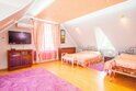 Интерьер с эркером придает ему определенный шарм. Стильные формы стен и потолков дополняют интересный дизайн дома. Прямо перед домом расположена уютная летняя беседка.