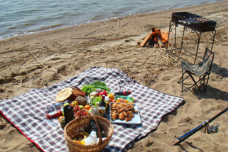 Озеро с пологим песчаным берегом. Также в наличии шезлонги.