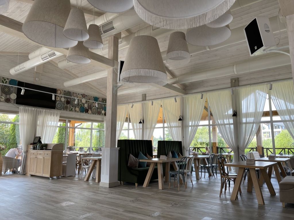Вместимость зала — 100 посадочных мест с двумя летними террасами. Отлично подходит для проведения свадеб, юбилеев и корпоративов. Площадка оснащена профессиональным мультимедийным и музыкальным оборудованием.