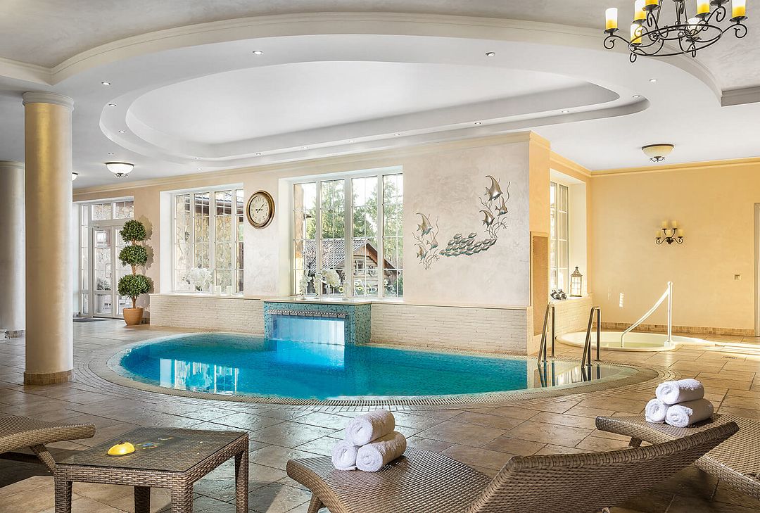 На территории СПА-комплекса (ограничение по возрасту 16+) предусмотрена многофункциональная водотермальная зона с закрытым бассейном и возможностью переплыва в открытый бассейн, джакузи, турецкая, финская, русская баня, баня по-чёрному, соляная пещера и тренажёрный зал, а также флоатинг, традиционный ритуал «хамам» и услуги оздоровительного массажа.