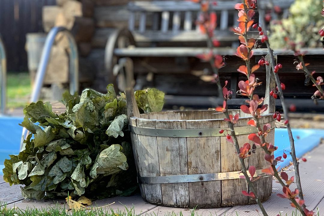 Для парения мы используем березовые и дубовые веники