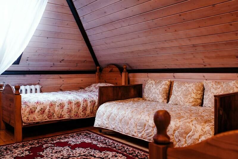 Усадьба рассчитана на 20 гостей, к услугам которых представлены семь комфортабельных номеров. Интерьеры комнат выполнены с большой любовью к деталям, каждый из них неповторим, поскольку мебель для усадьбы изготовлена вручную белорусскими мастерами.
