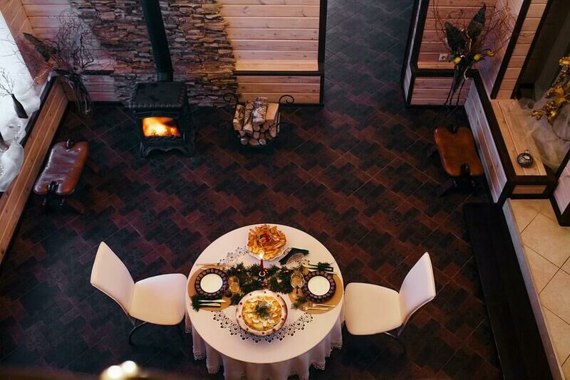 Двухэтажный дом с камином. Вместимость дома - 6 человек. Размер дома: 130 м².