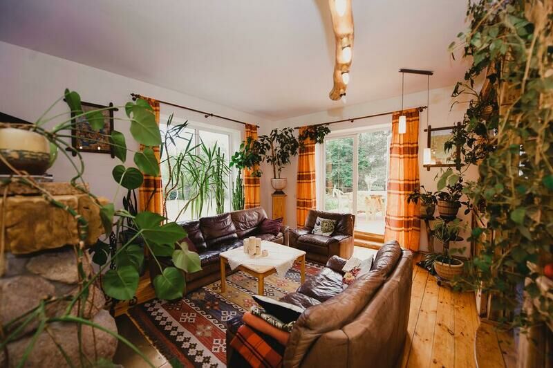 Дом с отдельным входом, камином и кухонными принадлежностями. Размер дома: 30 м².
