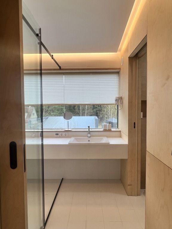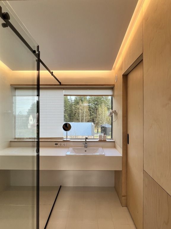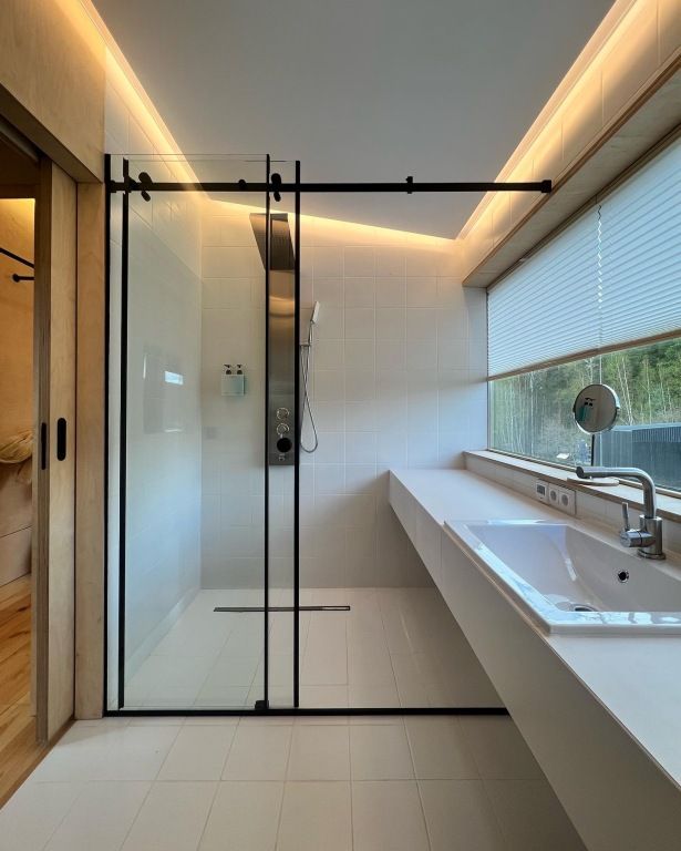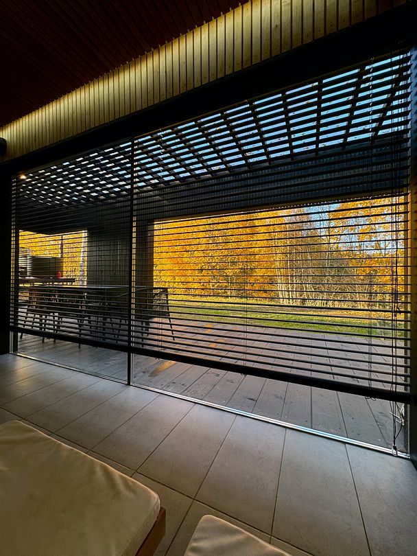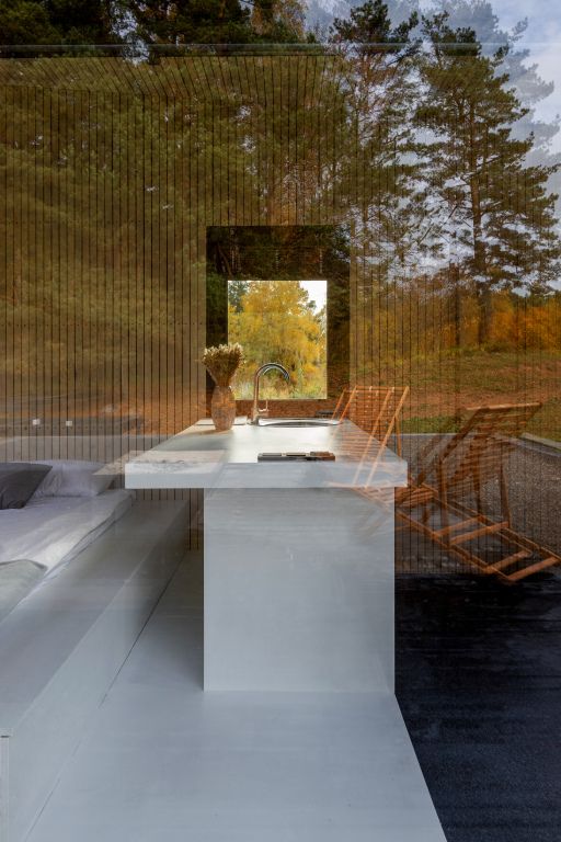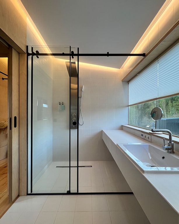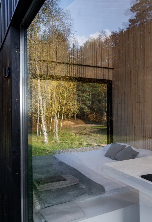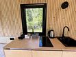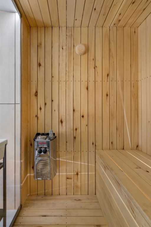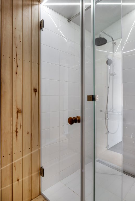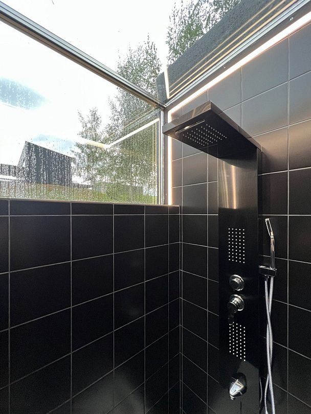На территории глэмпинга имеется панорамная сауна на дровах с травяной крышей и стеклянной душевой. Вместе с сауной можно арендовать подогреваемую купель и насладиться отдыхом на террасе среди берёз.