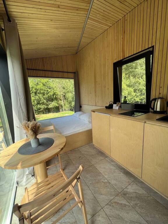 В глэмпинге также предусмотрены сапборды и лодка, а ближайший пирс с пляжем находится всего в 500 метрах. В лесу есть гамаки и качели, а также общая беседка для отдыха большой компании.