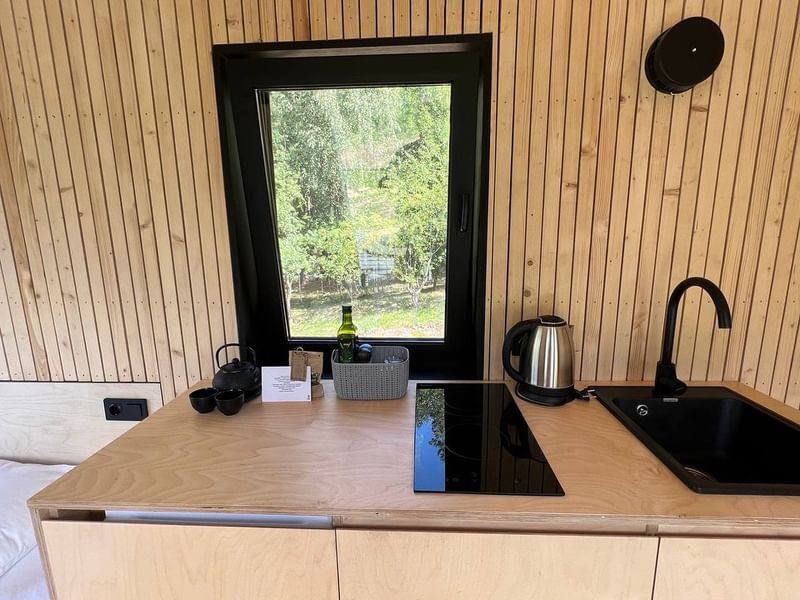 Для размещения доступны компактные домики «Tiny house» площадью всего 17–35 м², разработанные с учетом всех современных требований к комфорту для городских жителей.