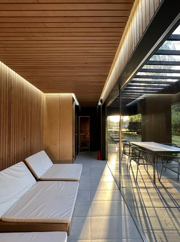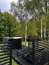 SPA-сауна c просторной террасой, травяной крышей, с джакузи и подогреваемой уличной купелью на дровах позволяет гостям наслаждаться отдыхом в любое время года.