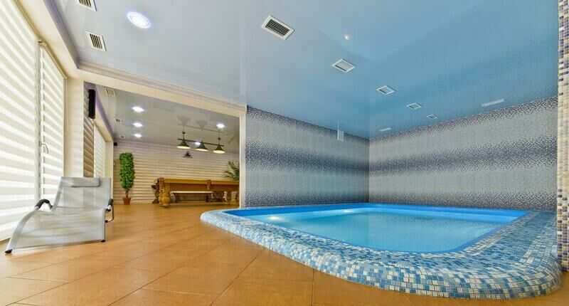 Бассейн с подогревом в закрытом помещении, работает круглый год. Бесплатен при проживании. Есть лежаки для хорошего загара.