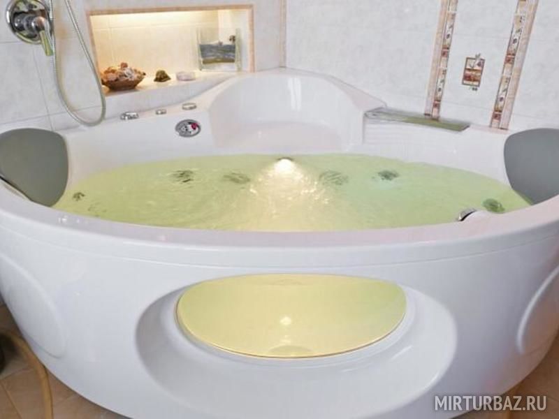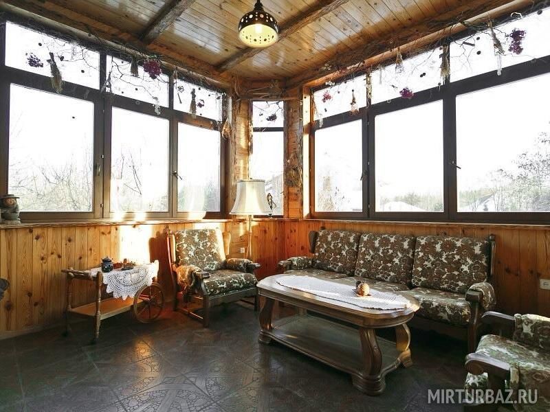 Семейный номер с диваном, сауной и плитой. Размер номера 30 м².