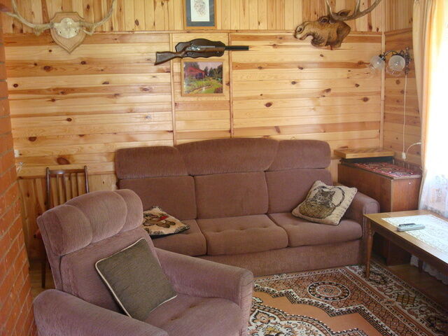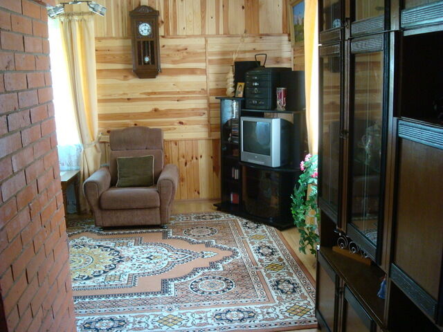 • гостиная (раскладывающийся диван, телевизор, музыкальный центр, печное отопление)