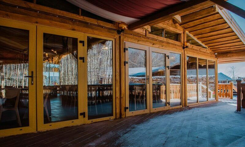 насладиться прохладительными напитками или же чашечкой чая или кофе. Здание ресторана выстроено из дерева, и непринужденный дизайн и интерьер помещения помогают чувствовать себя расслабленно и спокойно, растворяясь в окружающей атмосфере и полностью погружаясь в веселую компанию и в мир настоящего отдыха за городом, так необходимого в быстром темпе современного мира.Мангальная зона
