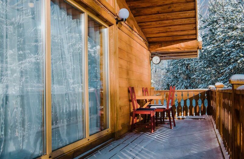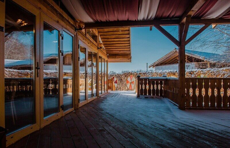 Отдельные домики, искусно выстроенные из натурального дерева. Более того, вся мебель в домиках также сделана из натурального дерева, что придает особый уют и неповторимость этому месту. Запах свежего сруба только усиливает позитивные эмоции и вызывает желание полностью раствориться в нем. Заходя в каждый из домиков, ты как будто оказываешься в своей детской сказке, или же у родной далекой бабушки, каждую секунду наслаждаясь ставшей такой редкой в наши дни уютной и натуральной простотой.
