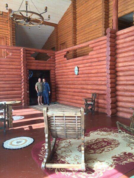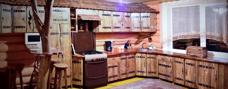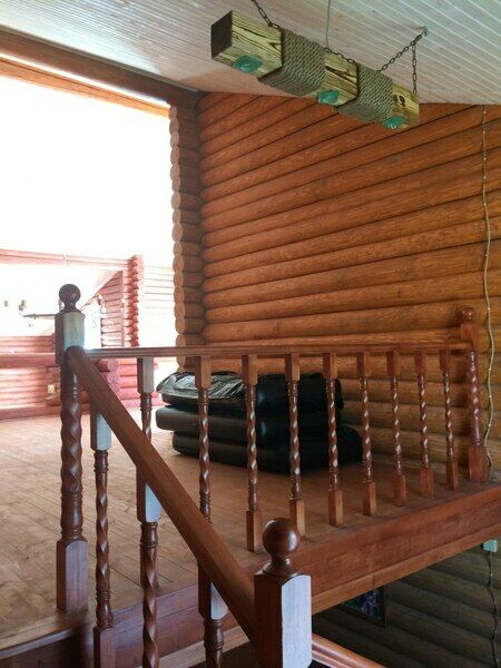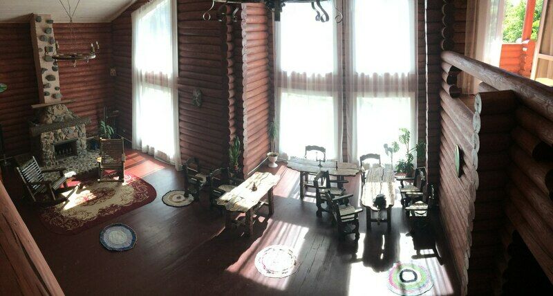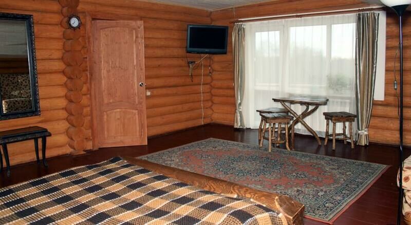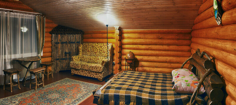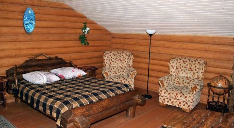 Отдохнуть и пожить можно в красивом двухэтажном доме из цельного дерева. Дом построен по старинной технологии из белорусского леса, без клееных материалов. Благодаря этому в доме всегда свежий воздух, напоенный лесными ароматами. В усадьбе есть восемь комнат отдыха (по четыре комнаты на этаже), каждая из которых рассчитана на 2-3 человека. Всего дом может принять одновременно порядка 24 гостей – это очень удобно для проведения семейных торжеств, отдыха в компании друзей, корпоративов и небольших банкетов.