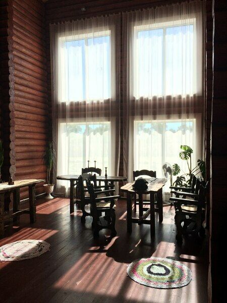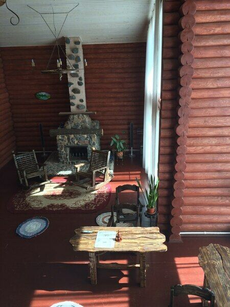 На втором этаже расположена комната отдыха, где можно расслабиться после парной и побаловать себя прохладительными напитками, поиграть в настольные игры. Для любителей "острых ощущений" имеется пруд рядом с баней, в который можно окунуться после обжигающе-приятной парилки.