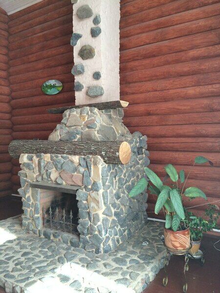 На первом этаже находится просторная (80 м²) гостиная с настоящим камином. В таком каминном зале приятно отдохнуть, пообщаться, выпить морс из свежих ягод или горячий чай, заняться текущими делами (если не получается совсем отрешиться от трудовых будней).