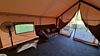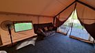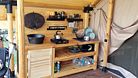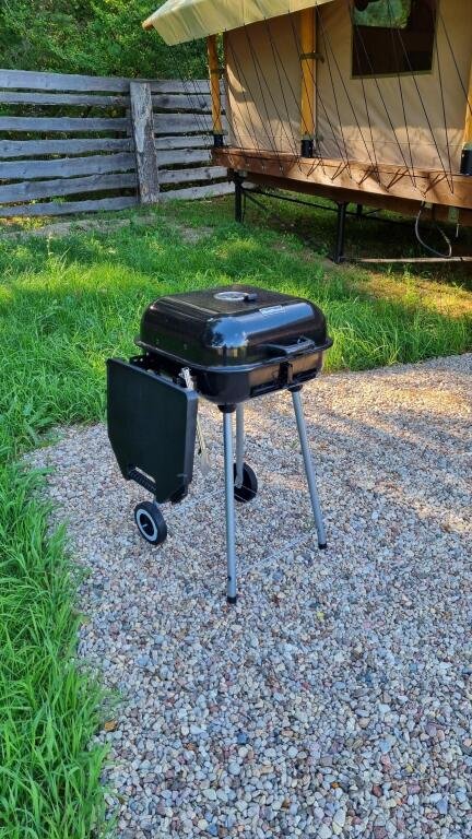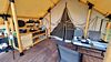 Палатка с мини-кухней, зоной барбекю и террасой.