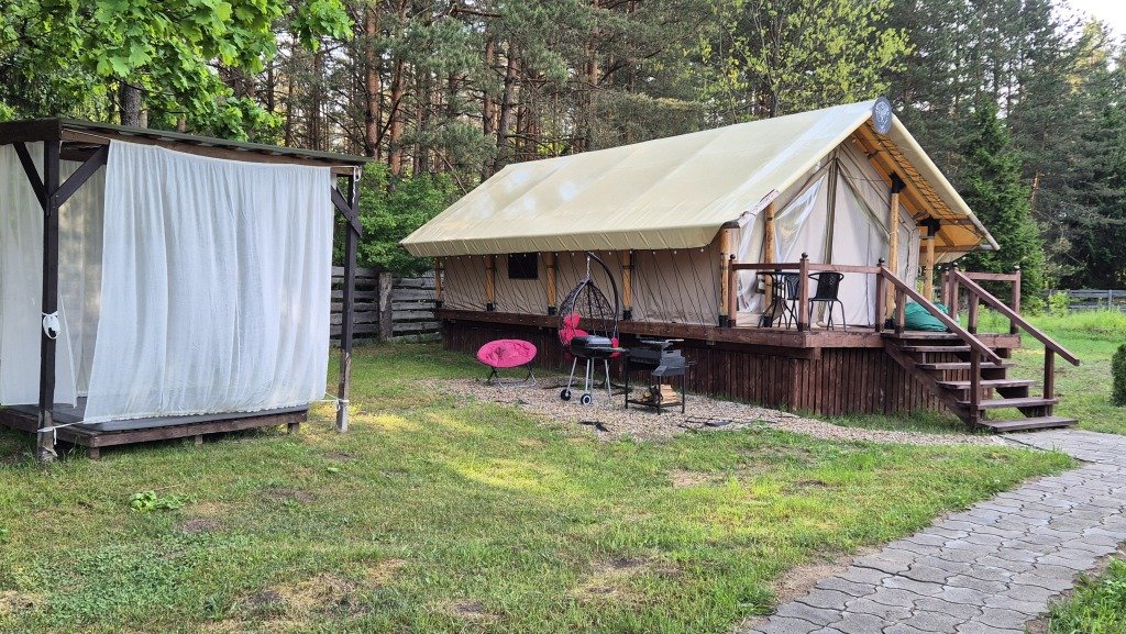 Глэмпинг "Кабан" с балконом и с красивым видом из окна